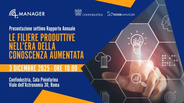 Mercoledì 3 dicembre alle ore 10.00, in Confindustria (viale dell’Astronomia 30 – Roma), 4.Manager presenta il 7° Rapporto del suo Osservatorio, dedicato a “Le filiere produttive nell’era della conoscenza aumentata”. Le filiere in Italia generano oltre il 56,4% del valore aggiunto nazionale e il 67,3% dell’export. Il nuovo Rapporto le analizza non più come semplici…