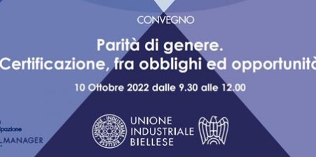 Il 10 ottobre dalle 9.30 alle 12.00 si terrà il convegno “Parità di genere. Certificazione, fra obblighi ed opportunità” organizzato da Unione industriale biellese con la partecipazione di 4.Manager.