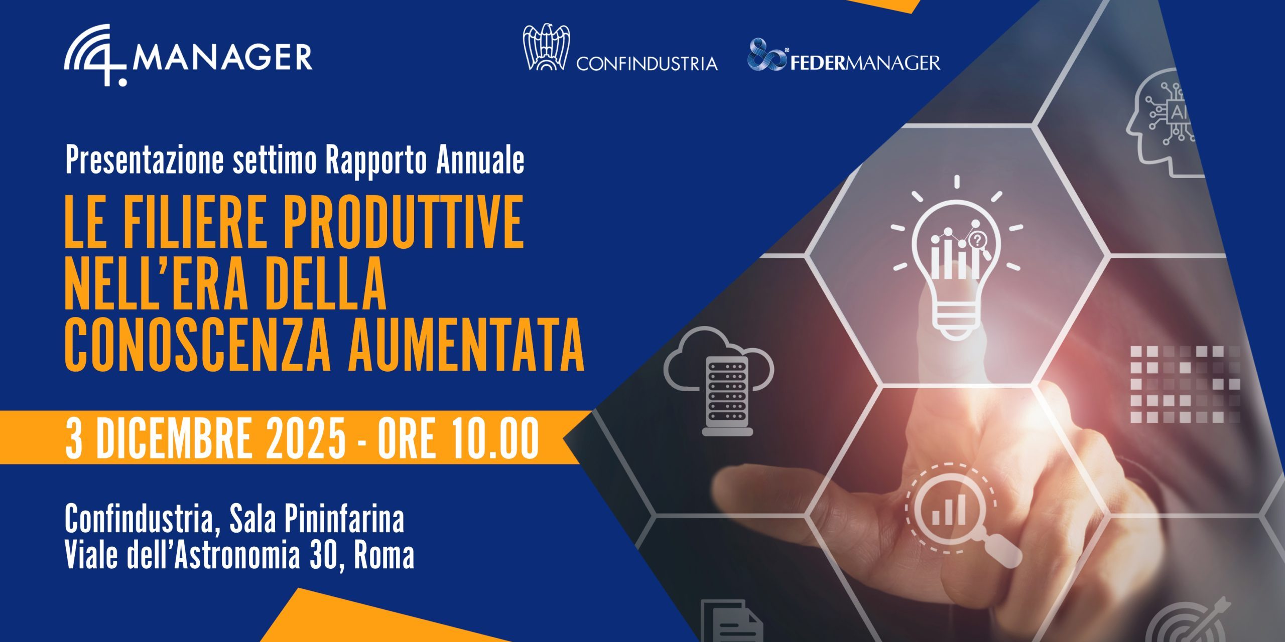 Mercoledì 3 dicembre alle ore 10.00, in Confindustria (viale dell’Astronomia 30 – Roma), 4.Manager presenta il 7° Rapporto del suo Osservatorio, dedicato a “Le filiere produttive nell’era della conoscenza aumentata”.